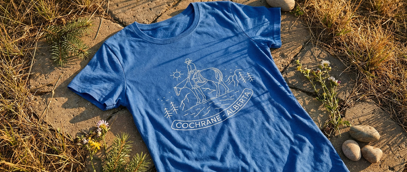 Most days, inspiration comes from exploring the area with our two dogs, Finn and Treek: equal parts trail scouts, quality-control supervisors, and mud distributors. These designs are my love letter to this place: the quiet mornings, dramatic weather, and the feeling that the prairies and mountains are constantly having a conversation.
